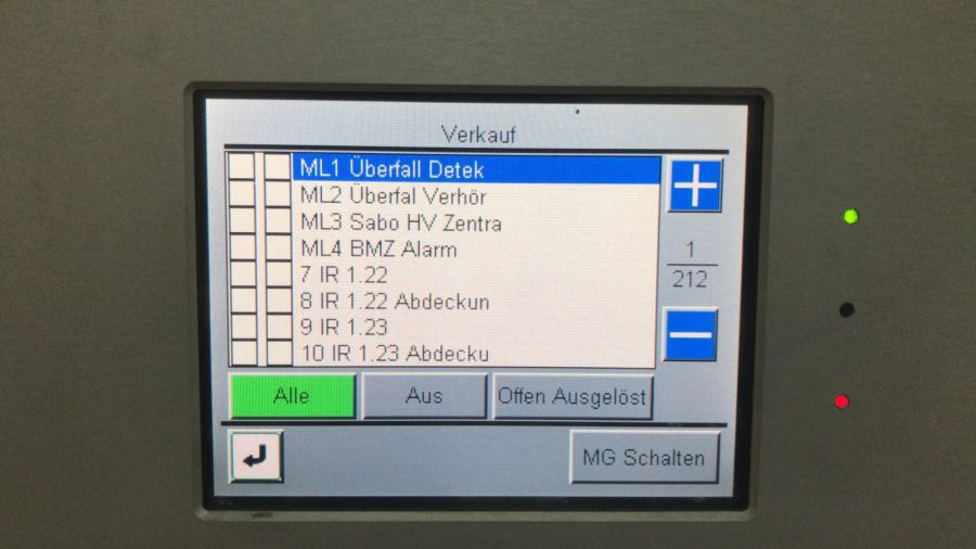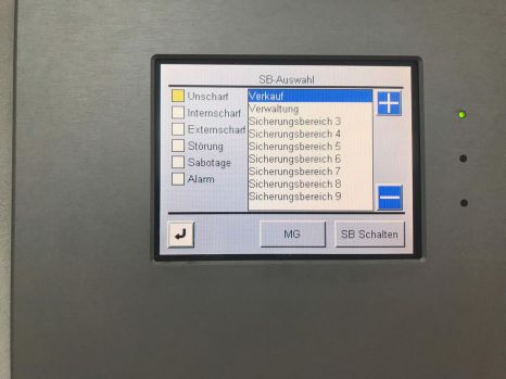 nachfolgendes Bild zeigt keinen offenen Melder im Verkauf, der Bereich Verkauf kann scharfgeschaltet werden!