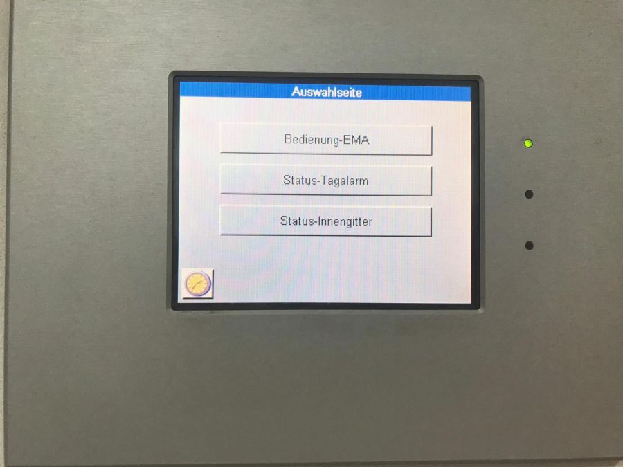 3) Schließen Sie die Notausgänge ab , ziehen Sie die Rollgitter herunter, achten Sie auf die Verriegelung und die Druckpunkte der SK an den Führungschienen der Gitter, damit die Anlage erkennt, dass das Gitter unten und eingerastet ist!